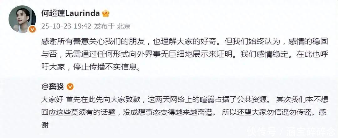 窦骁何超莲双双辟谣婚变,俩人感情稳得很!